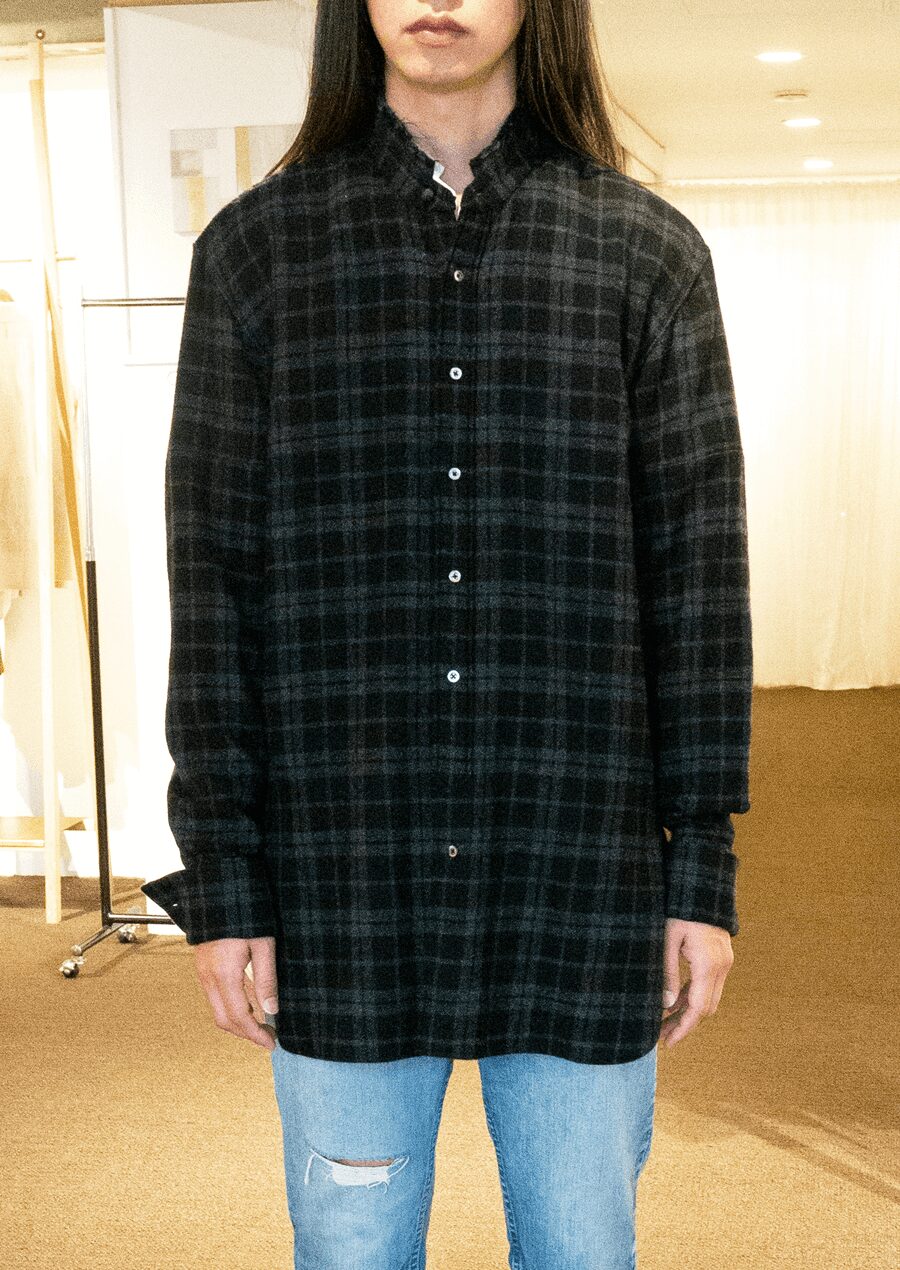 長い着丈に深いスリット、ダブルカフスと立ち切りのバンドカラー、これもドレスシャツの青臭いアレンジがAMCらしい”Lou"。