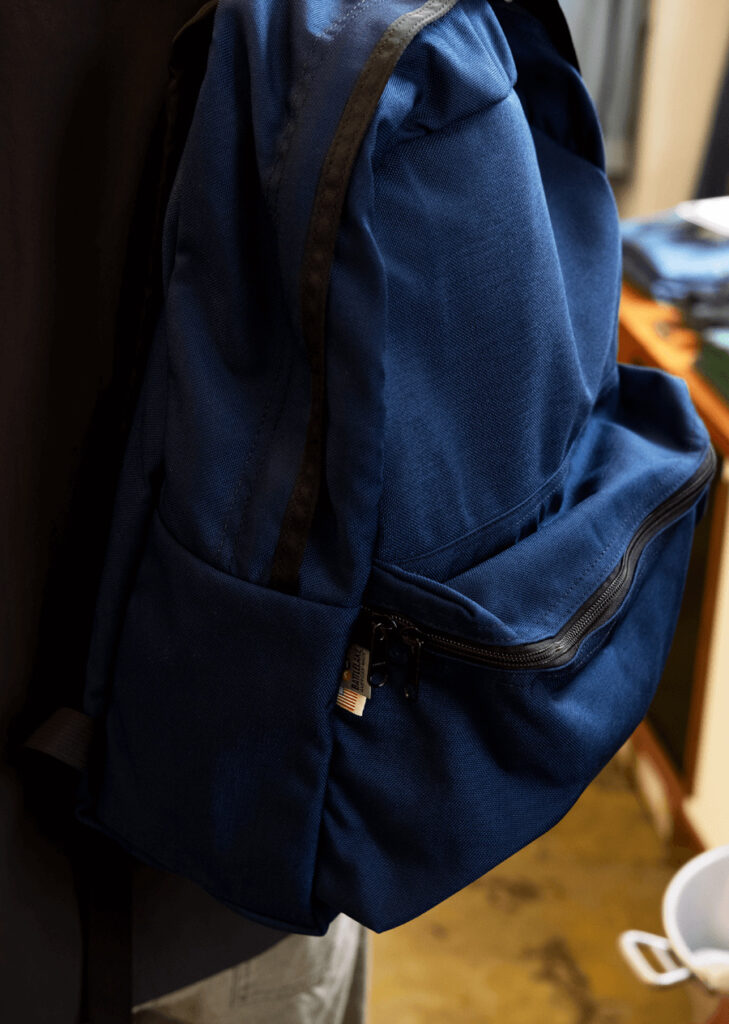道具として目的を果たす為にタフに作られたのが伝わってくる DAYPACK。特にNYLON素材それが感じ取りやすい。生命力を感じる躍動感で、やっぱり背負った姿がカッコいいアメリカ製のNYLON DAY PACK。