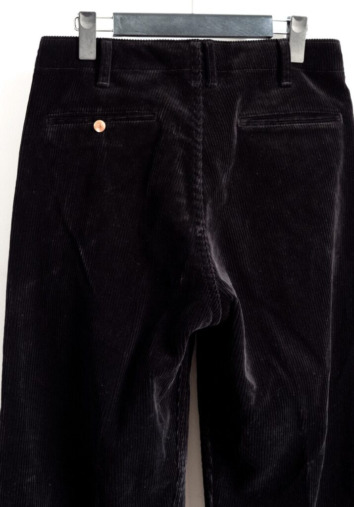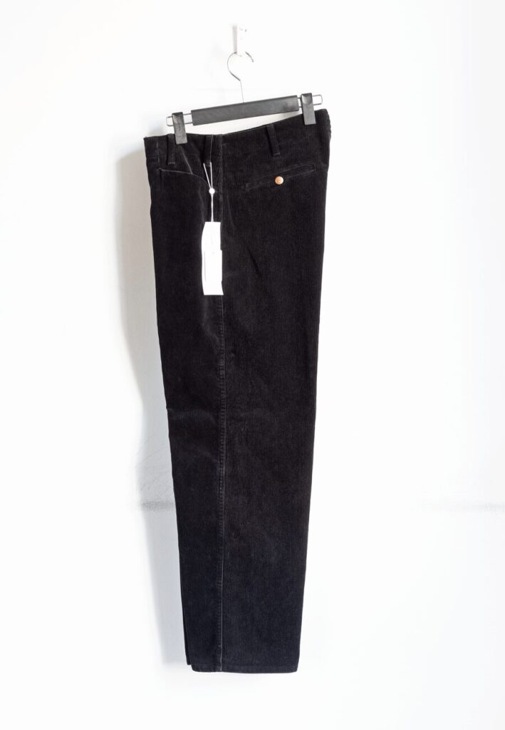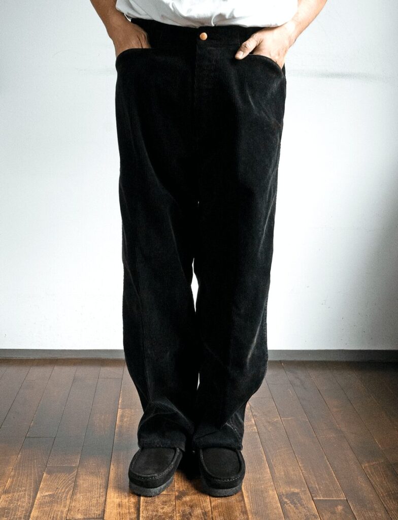 これぞアメリカンなワークパンツディテール & ワイドシルエットに太畝のブラックコーデュロイ。ワークアイテムをモチーフに無骨でコアな雰囲気は活かし、モダンでさり気ないエレガンスを纏わせるのがCOMOLIらしさ。青臭さくフレッシュな気持ちは根っこに残して大人になった、そんな感じが良いんですね。