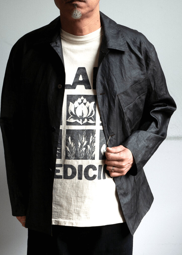 ORGANIC COTTONを使ったアメリカンプロダクトBODYに、自然回帰や瞑想色の強いメッセージ、ナチュラリストな感覚とストリート感が高次元で融合したアーティスティックT-shirt。