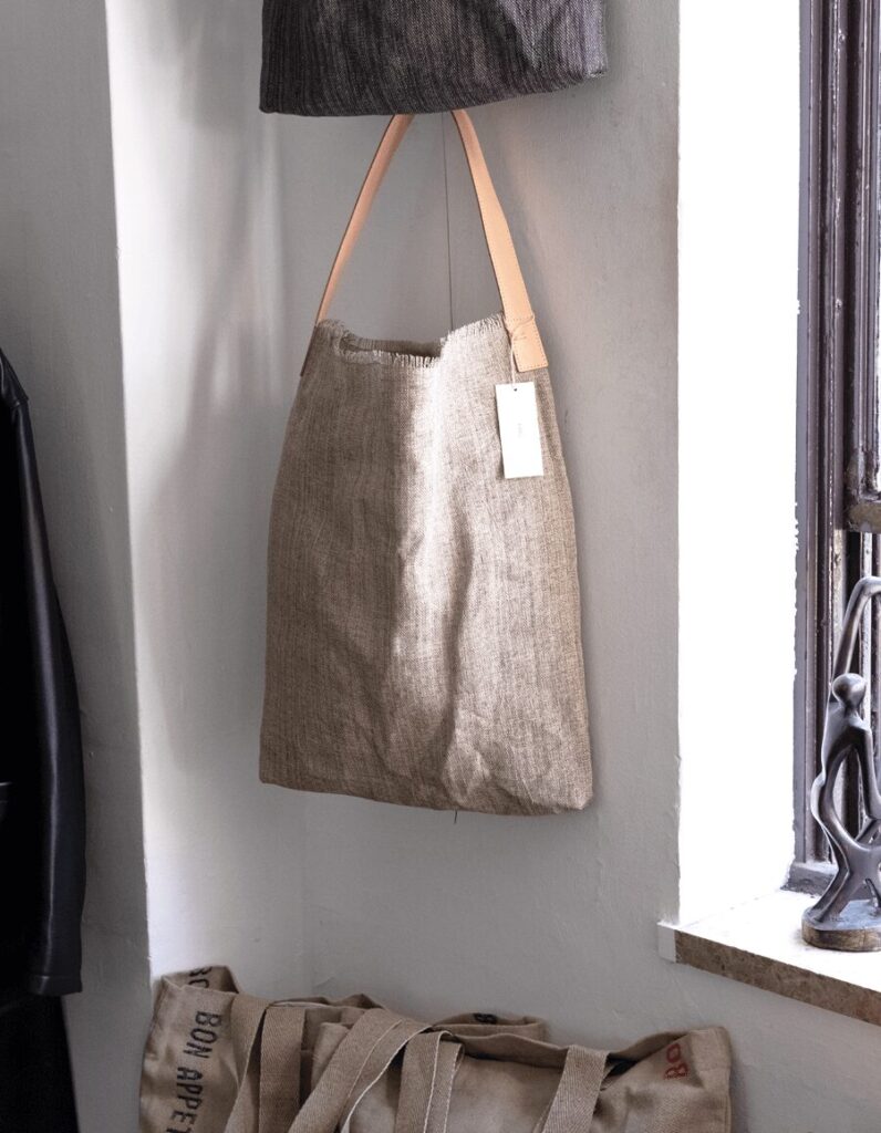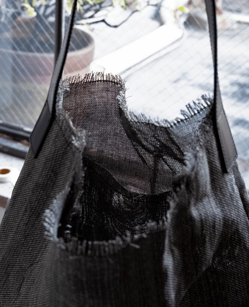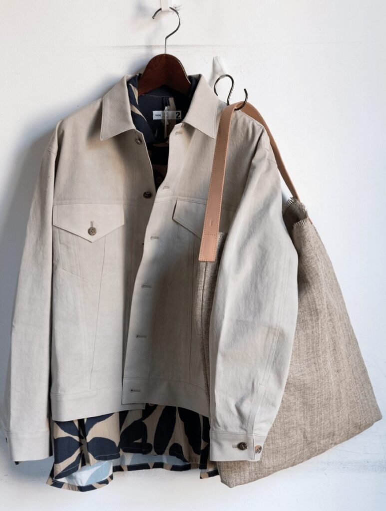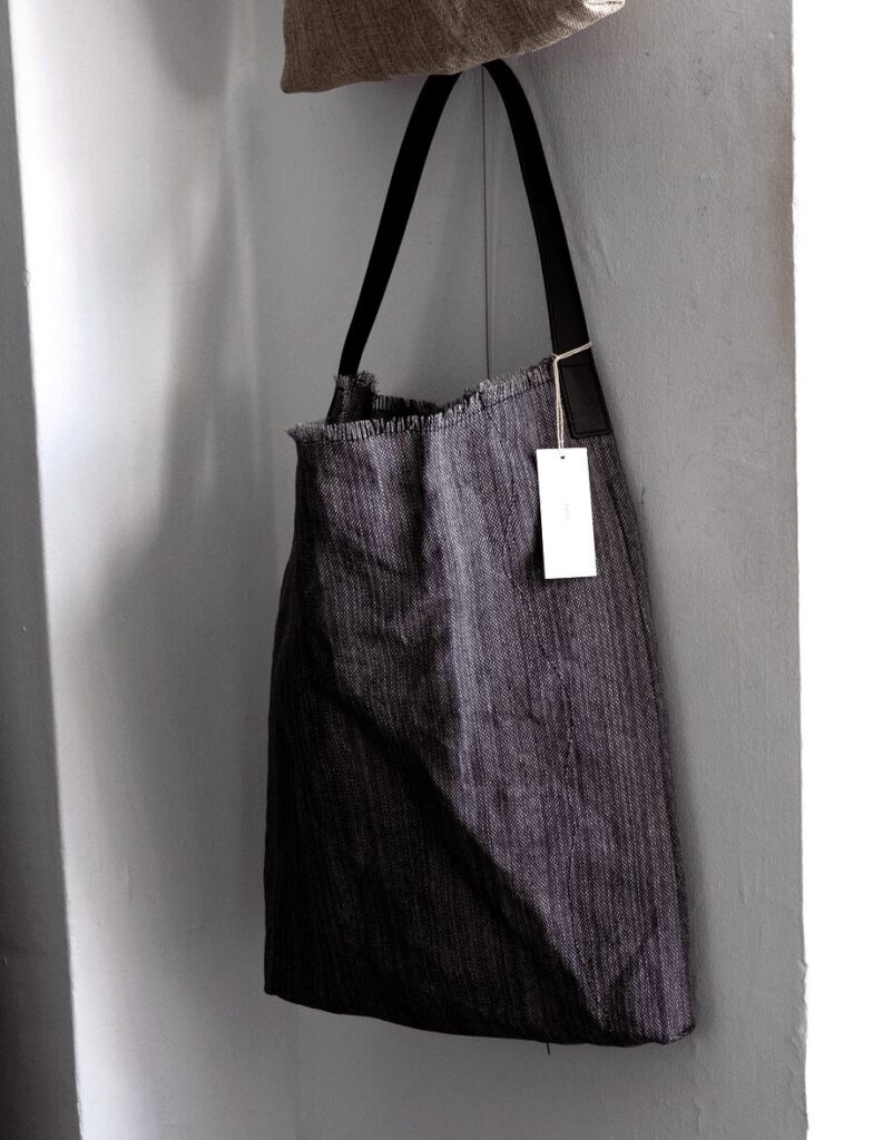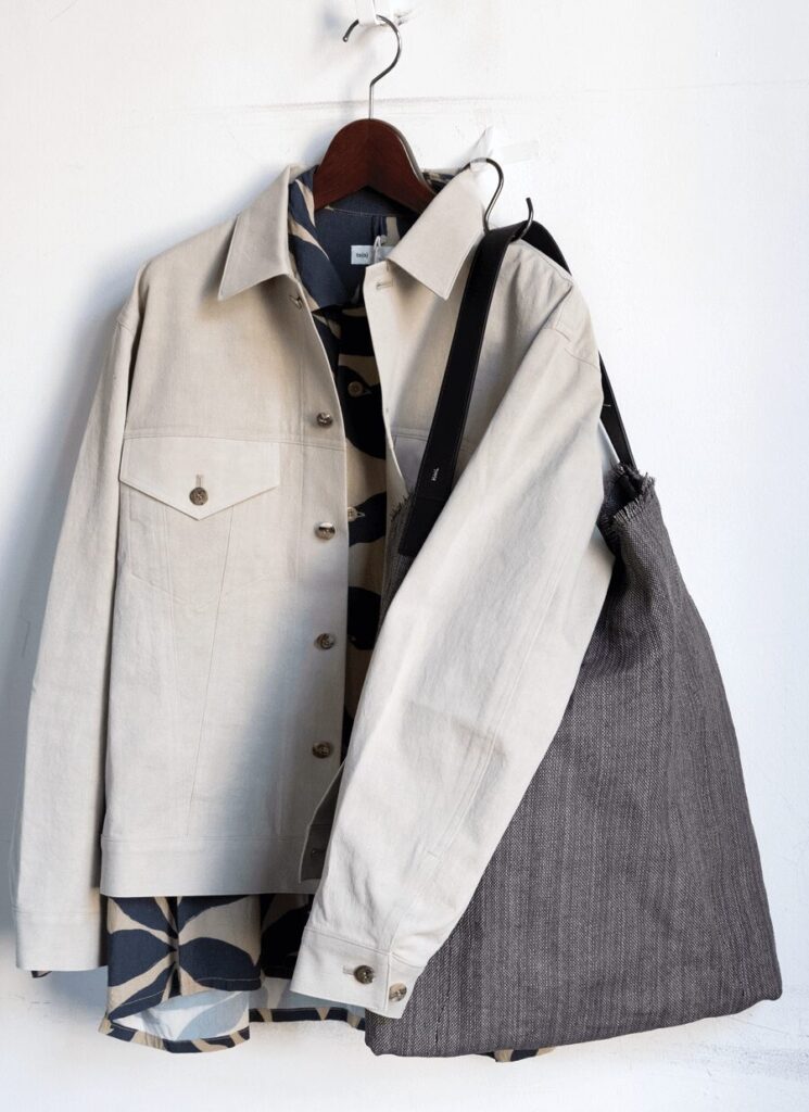 キッチリ感を与えるレザーハンドルのアクセントも絶妙で、麻袋を使った鞄のような根源感とSTYLISHさのバランスが素晴らしい。