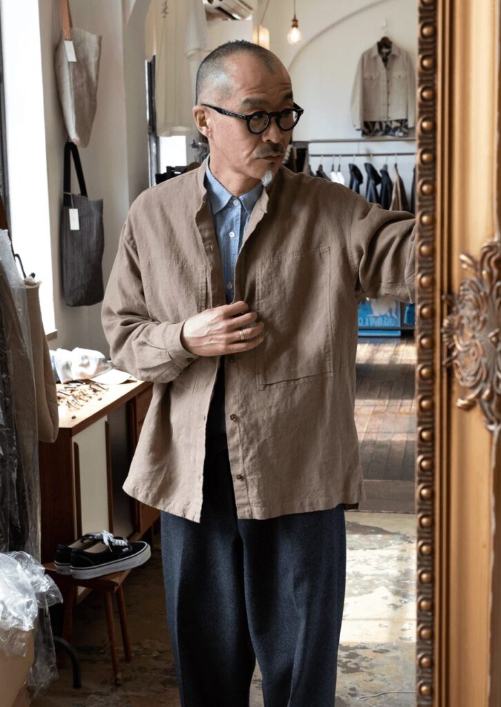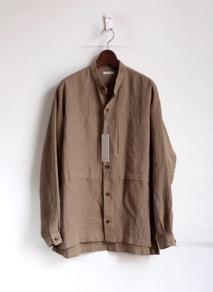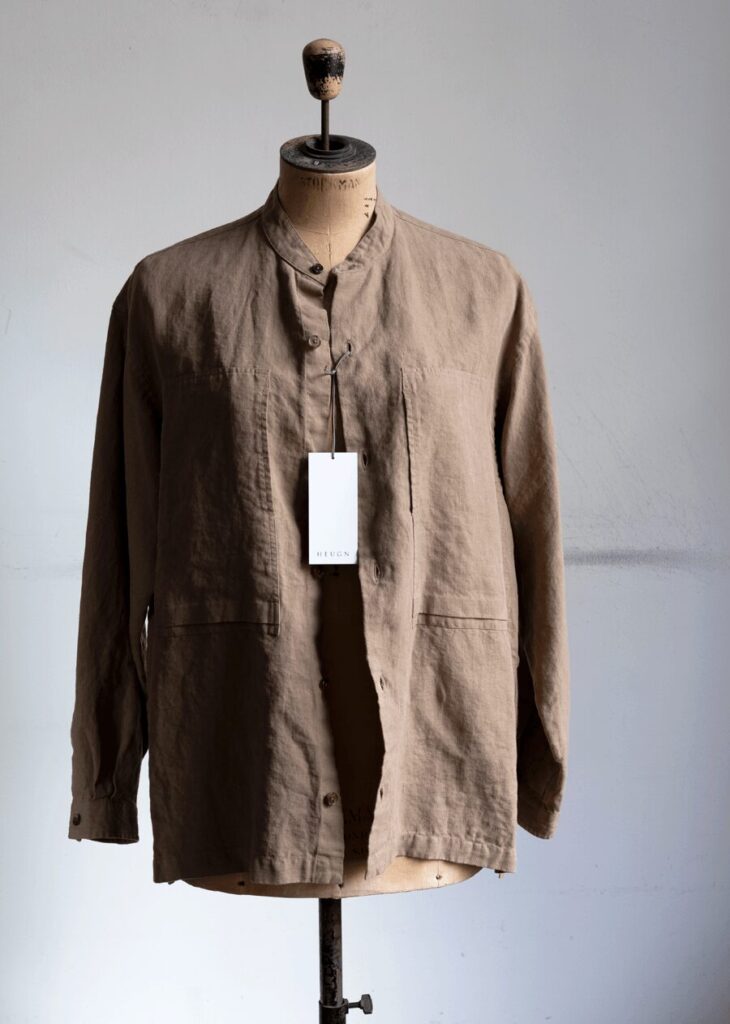 イタリアのファブリックメーカーのタンブラーのかかったリネン素材を使用。USミリタリーブルゾンをベースにしたシャツブルゾンを製作。