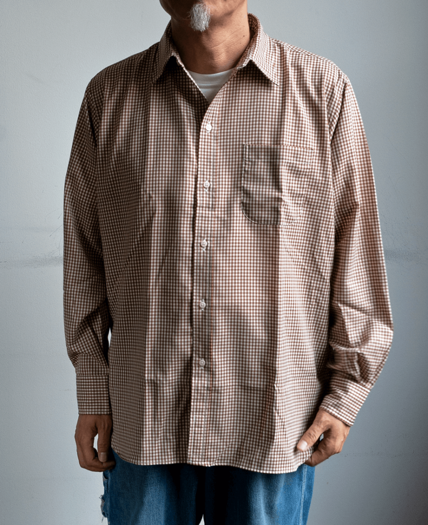 今回のスモールギンガムはコットン素材同様に程よい綺麗めカジュアル感は漂わせながら、お坊ちゃんぽさを感じさせない大人な印象で、身幅広めなCLASSIC FIT, REGULAR COLLR,6つボタン の山口ストアー別注と衝撃的な相性の良さ✌️。