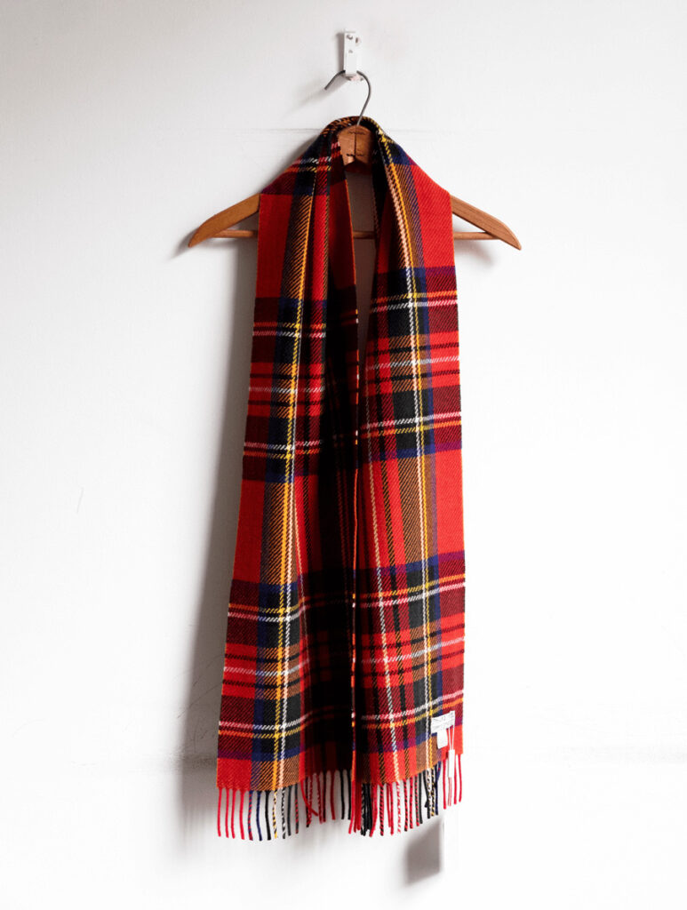 赤,イエロー,ネイビー,ホワイト… “ROYAL STEWART” と呼ばれるTHE TARTAN CHECKなんですが、Joshua Ellisの職人が作り出すボヤけず凛とした柄と素材感、伝統とモダンをブレンドさせた絶妙なセンスのカラーブロックで、普遍性とフレッシュさを兼ね備えた稀有な存在感のストールに仕上がっています。