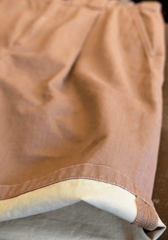 PIGMENT PRINTのチノはkiivu得意のテキスタイル開発魔術で、ダック素材を履き倒したような素朴な奥行きを感じる素材感、男性の顔映りがとても良し。