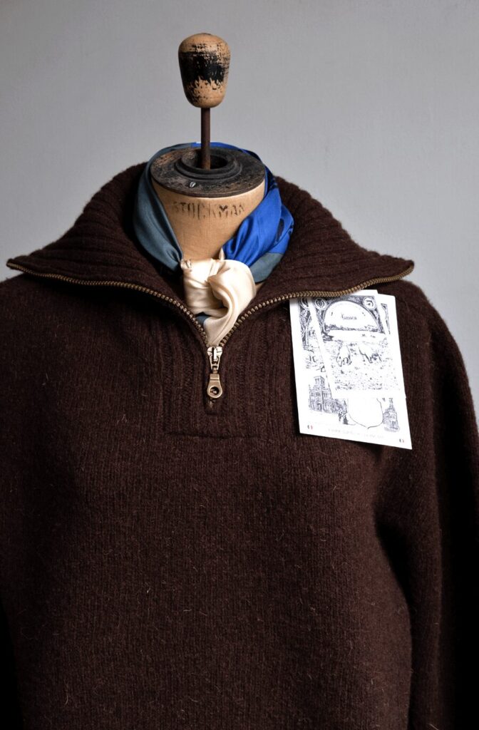 フランスメイドの上まで閉めてタートルにも出来るジップポロセーター。