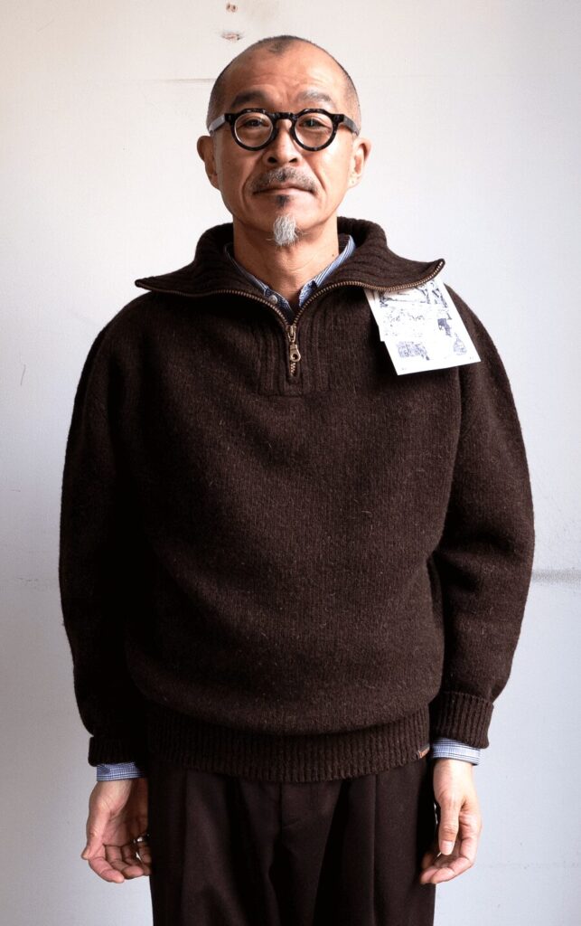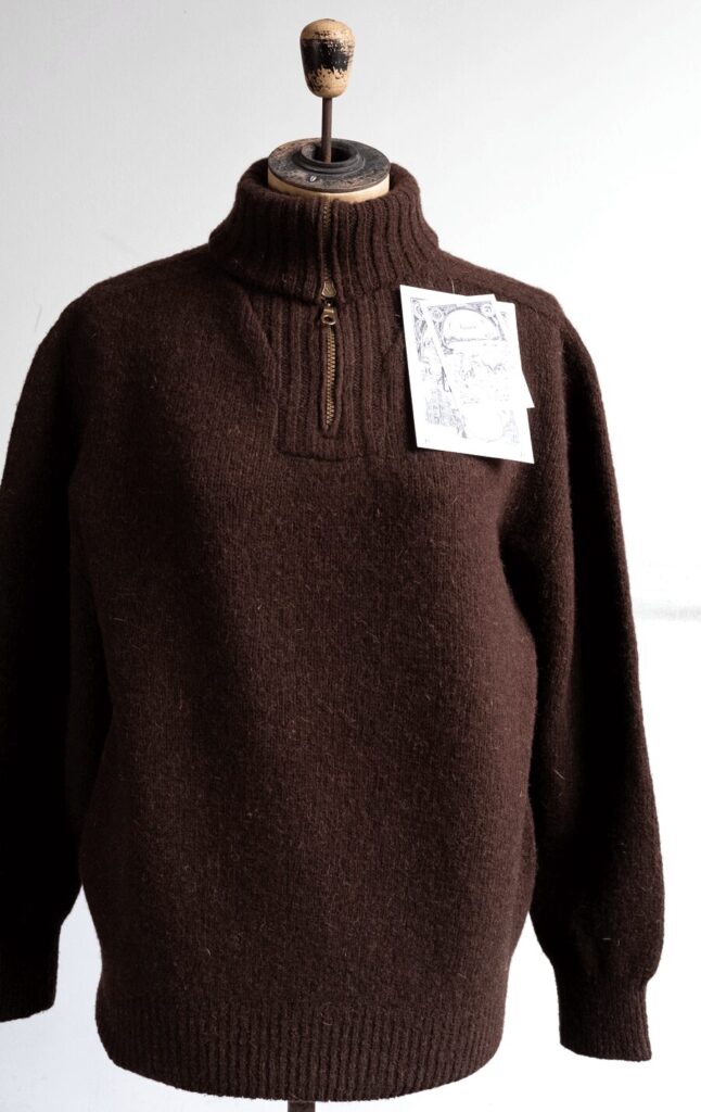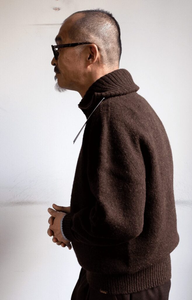 冬に持て余さない感じのバルキーさ、そして朴訥としたメランジニットの風合い、とても今着たい!! 最高です。