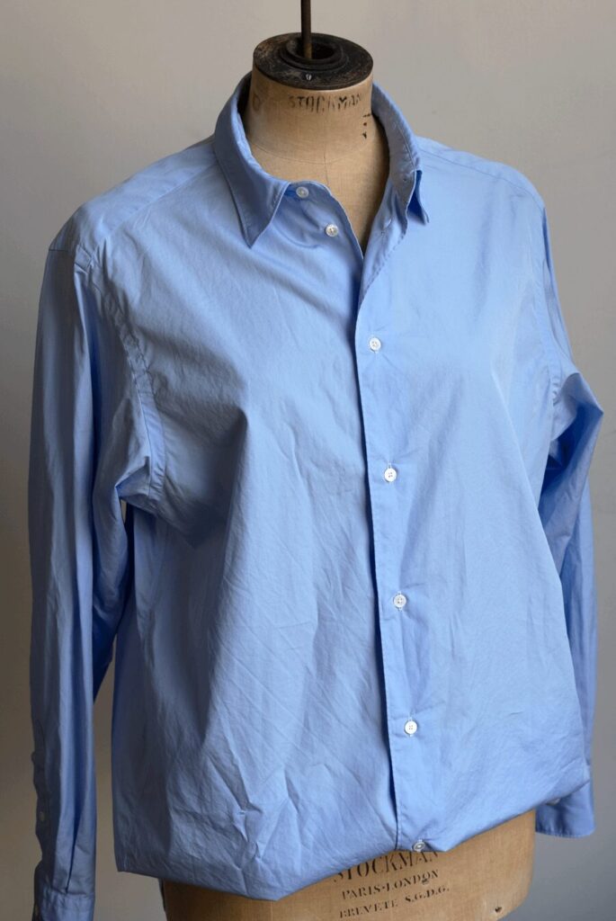 ドレスシャツの品と、カジュアルシャツの心地よさを併せ持ったシャツを目指して お作りしたレギュラーカラーシャツです。素材は、ALUMO社の質感滑らかな120/2ブロードを使用しています。