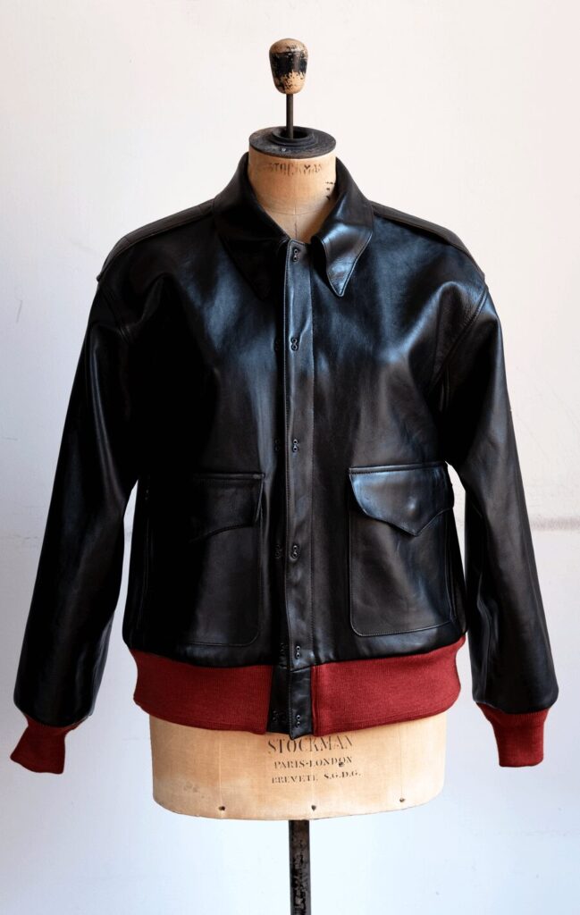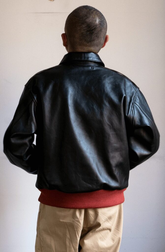 茶芯のラムレザーの奥の繊維層を茶色、表面層をNAVYで特殊染色した趣き深い素材をレザー職人が丸縫いをして仕上げた、クラフトマンシップと生命力溢れた男心が震えるA2が仕上がってきました。