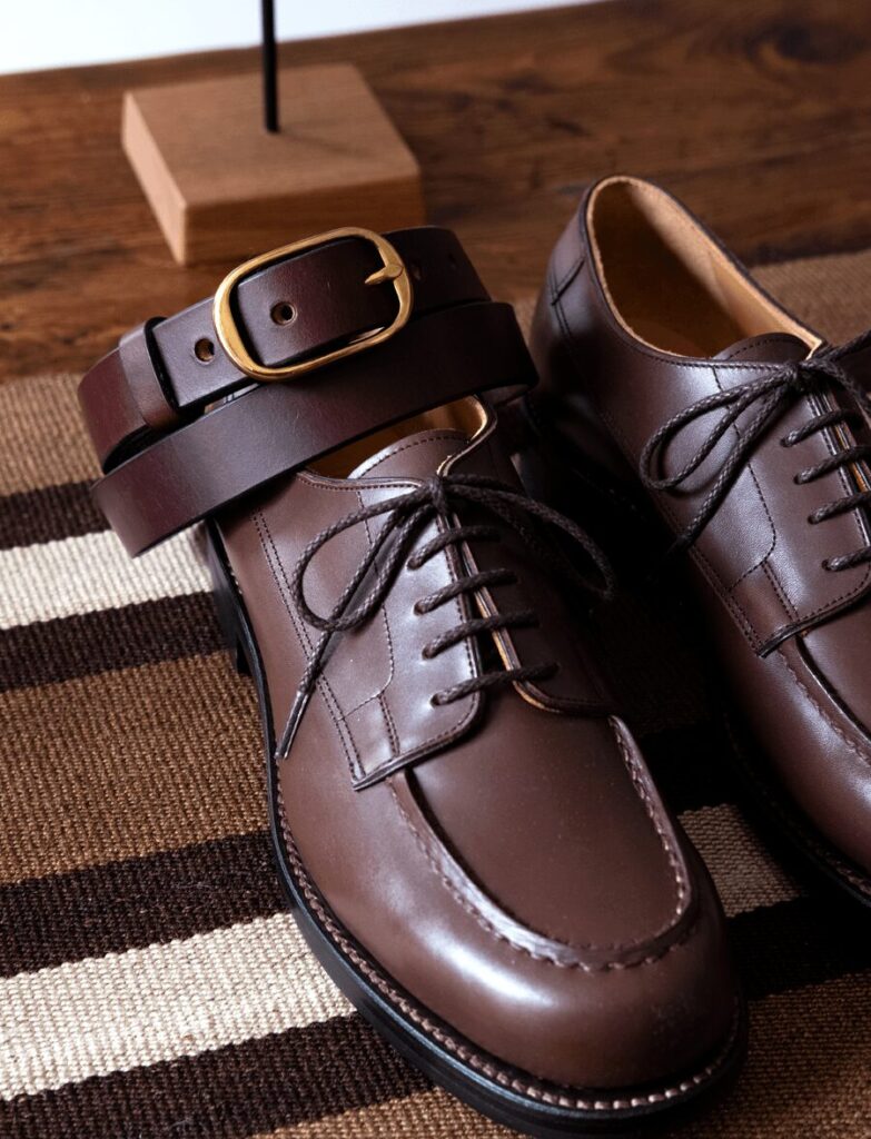 革とバックルのVINTAGE風合いに、細みの25mm巾で絶妙にモダンさプラスされた ちょっと他所では見かけない空気を纏ったBELTなんです。
