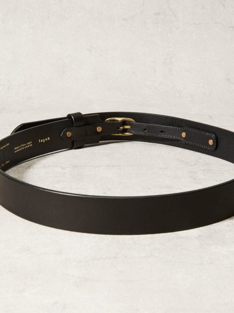 THE ENGINEER’S BELTという無骨な表情に、texnhのアイコン真鍮リベットが美しく2つ美しく並んで、そのコントラストが最高にカッコいいい。