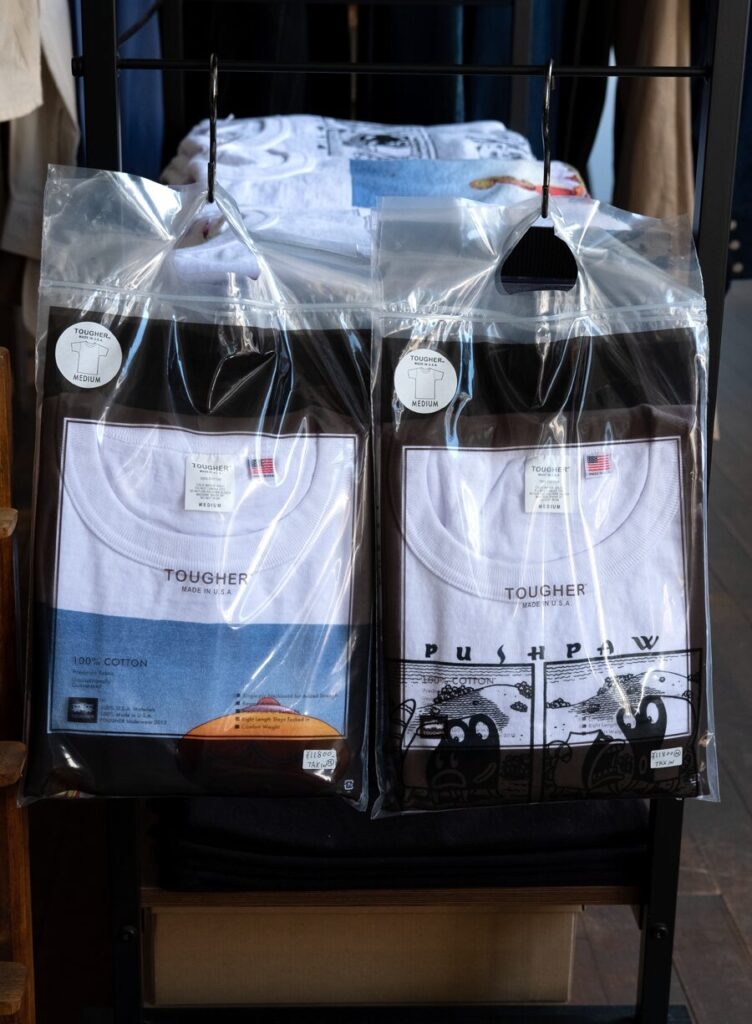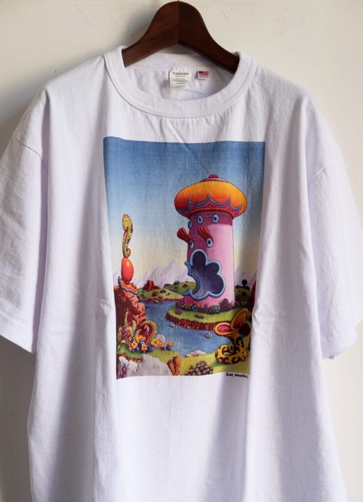 今年もアメリカのオルタナティブコミックのレジェンドJim Woodring⽒の作品をフューチャーしたTOUGHERのプリントTee。夏の快適お洒落素材と認知されてきた、糸が縮れて凹凸感と膨らみを生む空紡糸の7.5ozヘビーウェイトBODY。BOX型のカラッとした肌触りで肉感のあるBODYに、メルヘン過ぎないGRAPHICがフレッシュで心地いい。
