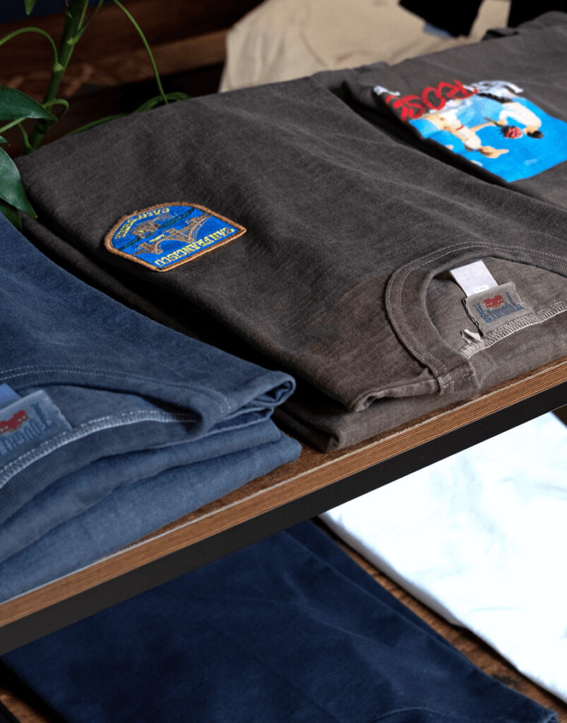 タフな素材、染め、アクセントのバランスが普通に見せてモダンに練り上げられていて、アメリカンなバタ臭さと前衛的なテンションがうまく溶け合ったユルカッコいいTシャツ。