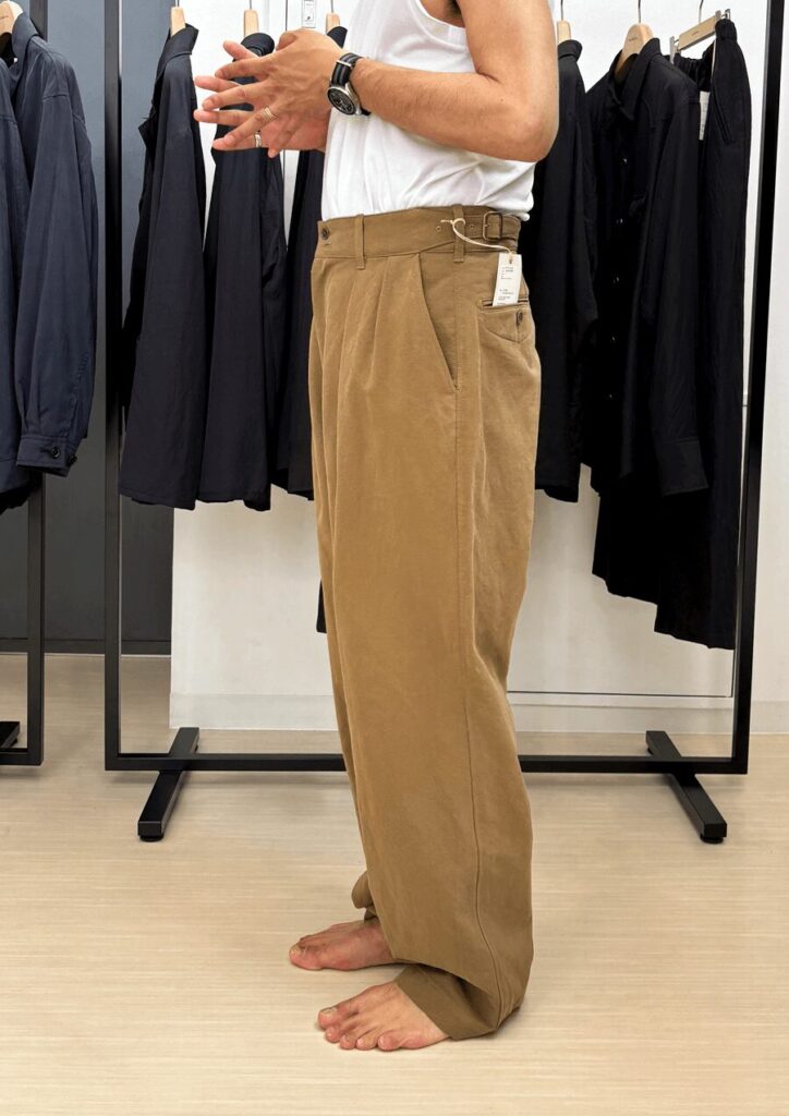 TUCKED MILITARY-TROUSERSの名前の通り、ワークやミリタリーの骨っぽさは感じさせながらエレガント見えするBOTTOMSを作らせたらピカイチのULTERIOR。