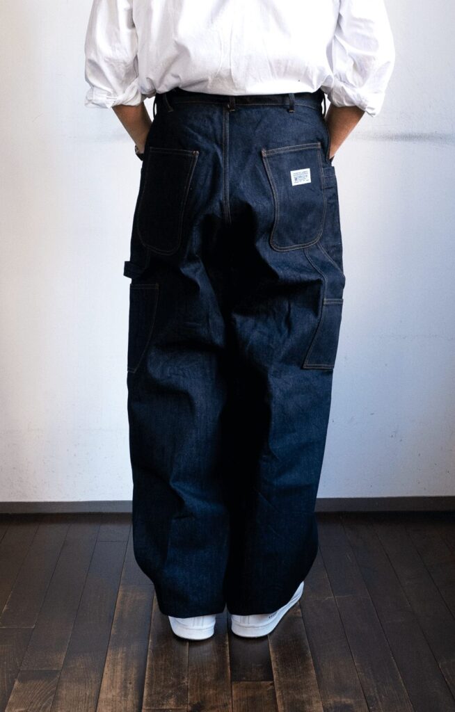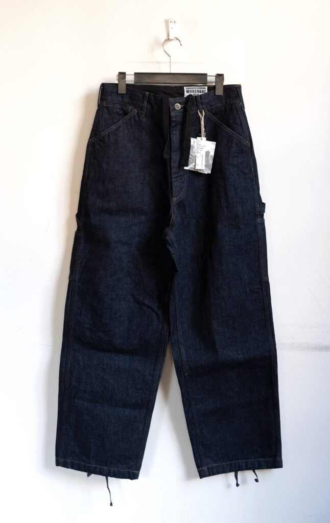 股上が深くワイドで絞りの少ない、バタ臭く美しいフォルムが映えるEG WORKADAYのペインターパンツ。