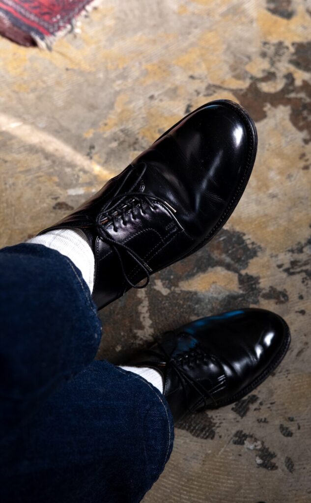 僕の体型では細めのジーンズはイマイチなんですが、CIOTA Straight 5 Pocket Pants Navyはバタ臭くエレガントなシルエットがバッチリ、シャープなトゥのALDEN #53507 Modified Last Plain Toeと合わすのがお気に入り。