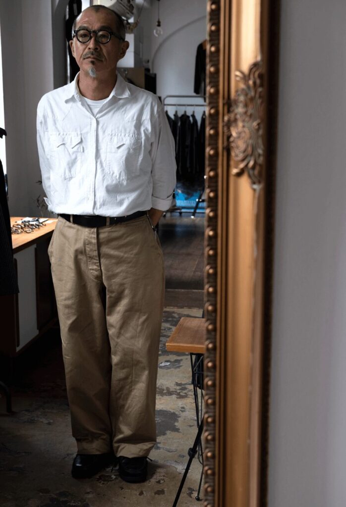 ネップの味わいと白シャツのクリーンさが絶妙に融合したkeylime https://keylimetokyo.com, PARKS Paris https://parkslabelstore.com関隼平さんが手掛けるSHのウエスタンシャツ。バタ臭く垢抜けた独自のニュアンスのウエスタンシャツ。イナたカッコいいと言うのが気分です。